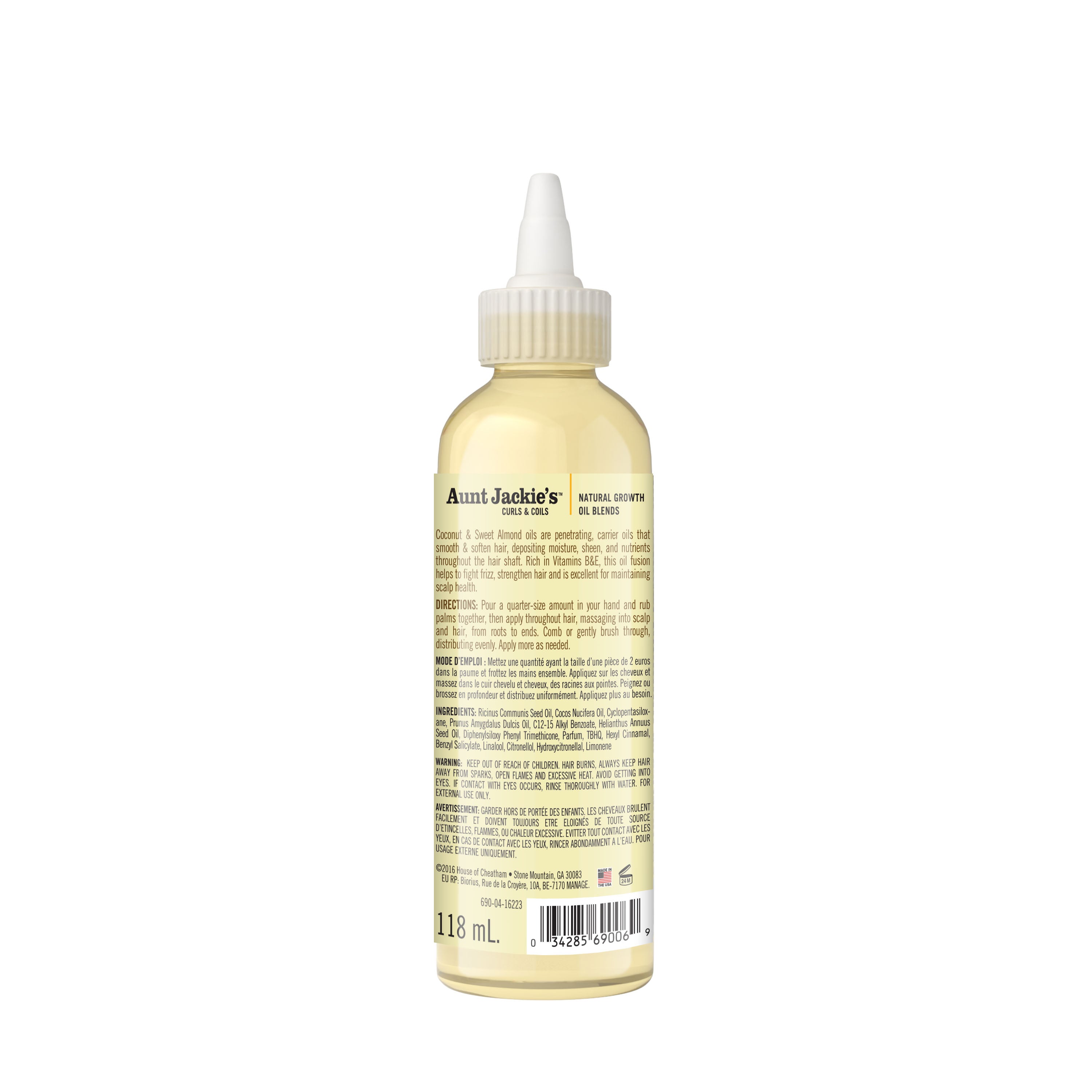 Coconut & Sweet Almond oils are penetrating, carrier oils that smooth & soften hair, depositing moisture, sheen, and nutrients throughout the hair shaft. Enriched with Vitamin E, Vitamin B, and Vitamin D, this frizz fighting oil fusion helps strengthen hair and is excellent for maintaining scalp health.
